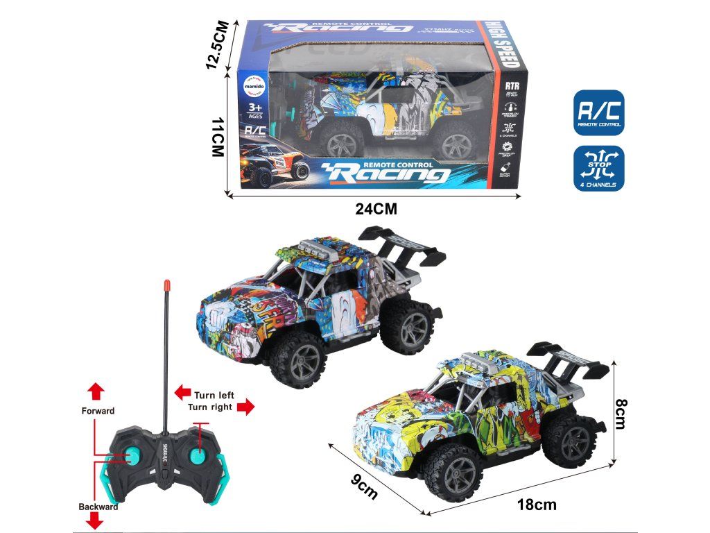 Stilvolles RC-Geländewagen mit Graffiti-Design bringt Kindern ein adrenalingeladenes Fahrvergnügen voller Spaß. Dank der Steuerung beherrscht es Fahrten vorwärts, rückwärts, nach links und rechts. Das Modell besticht durch sein attraktives Aussehen mit einem großen Heckflügel und sportlichen Details, die an einen echten Rennwagen erinnern.