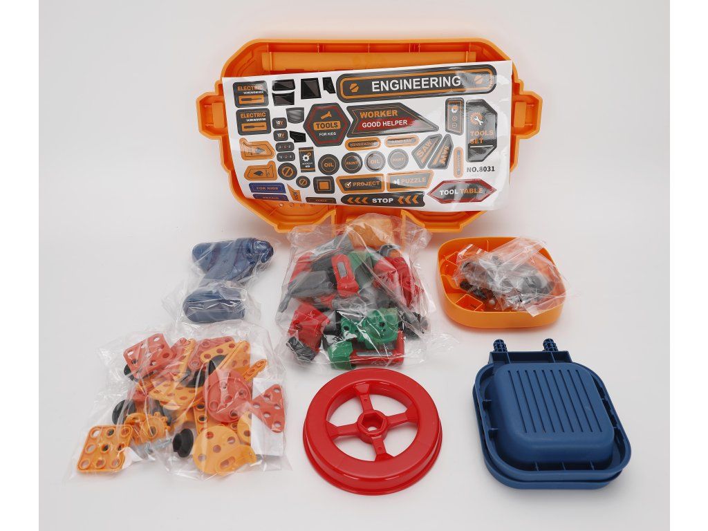 Wenn Ihr Kind gerne Papa beim Heimwerken hilft, ist dieses Set ideal für es. Das Set ist aus hochwertigen Materialien gefertigt und enthält 181 Teile. Ihr Kind kann sich einen Heimwerker-Tisch/Werkstatt zusammenbauen und dort alle benötigten Werkzeuge für die Arbeit organisieren. Der Bohrer wird mit 2 x 1,5V AA-Batterien betrieben (nicht im Lieferumfang enthalten) und kann zum Ein- und Ausdrehen von Schrauben verwendet werden.
